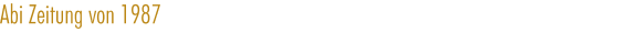 Hier könnt Ihr die original Abi Zeitung von 1987 als "Picture Pack" auf Euren HeimPC herunter laden... Die Seiten sind im "JPEG" Format abgelegt und wurden mit 600 DPI eingescannt. Alle Seiten sind in einem WinRAR Archiv "gepackt", trotzdem ist die Datei immer noch ca. 62 MB groß. Für einen Download solltet Ihr also mindestens ein ADSL, Cable Modem oder ne T3 Line haben... Zum Anschauen verwendet Ihr am besten ACDSee. Have Phun ;-)